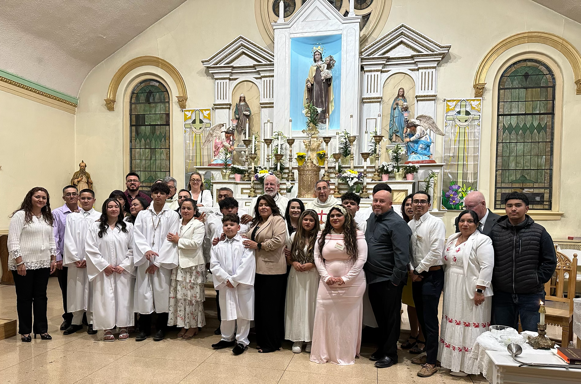 Erica Sanchez makes her First Communion in preparation for her confirmation on Pentecost Sunday with Bishop Berg this spring.